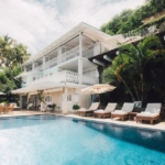 Bananaquit House looks out over the sea with commanding views out across to the island of St. Vincent in the south, with open coastline in front, where whales have been spotted from the main terrace, and a view of anse Chastanet bay to the north. The house sits in this community of hillside homes in lush surroundings with majestic views of the world famous Pitons from every level.