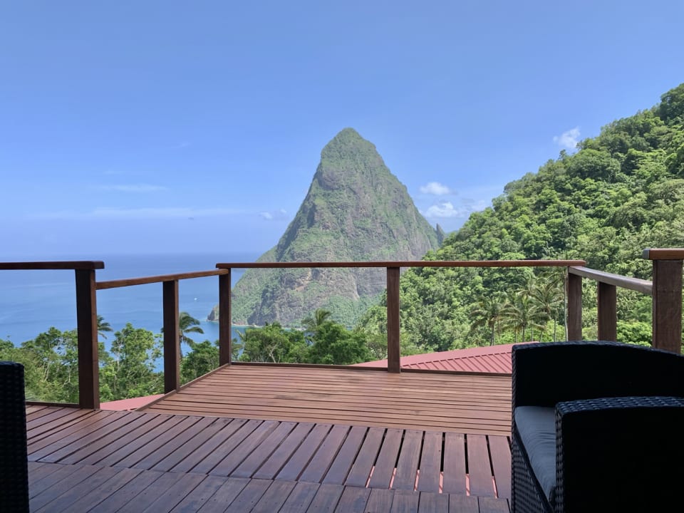 House of the Stars is an elegant luxury villa designed as a three-sided home and built of greenheart wood native to the rain forest and volcanic rock which bubbled to the surface millions of years ago. The home is artistically decorated with carvings of local but world-renown artists which blend into the rich deep wood grains of the greenheart. This is a truly unique home. The expansive view from the villa’s multiple decks unveil one of the world’s famous World Heritage Sites, consisting of the heaevenly blue Caribbean Sea, the western cliff of the Gros Piton and the majestic Petit Piton. The two Piton Mountains are the symbol for St. Lucia and House of the Stars is enveloped in this spectacularly beautiful mountainous setting.