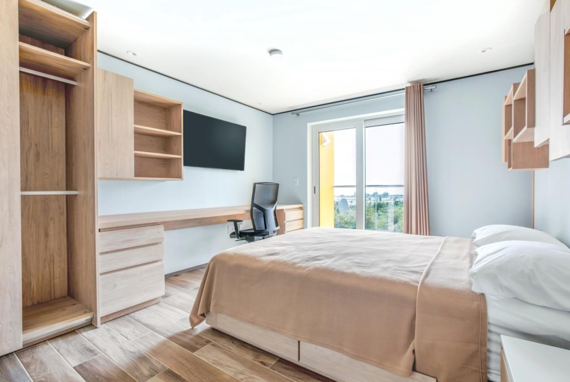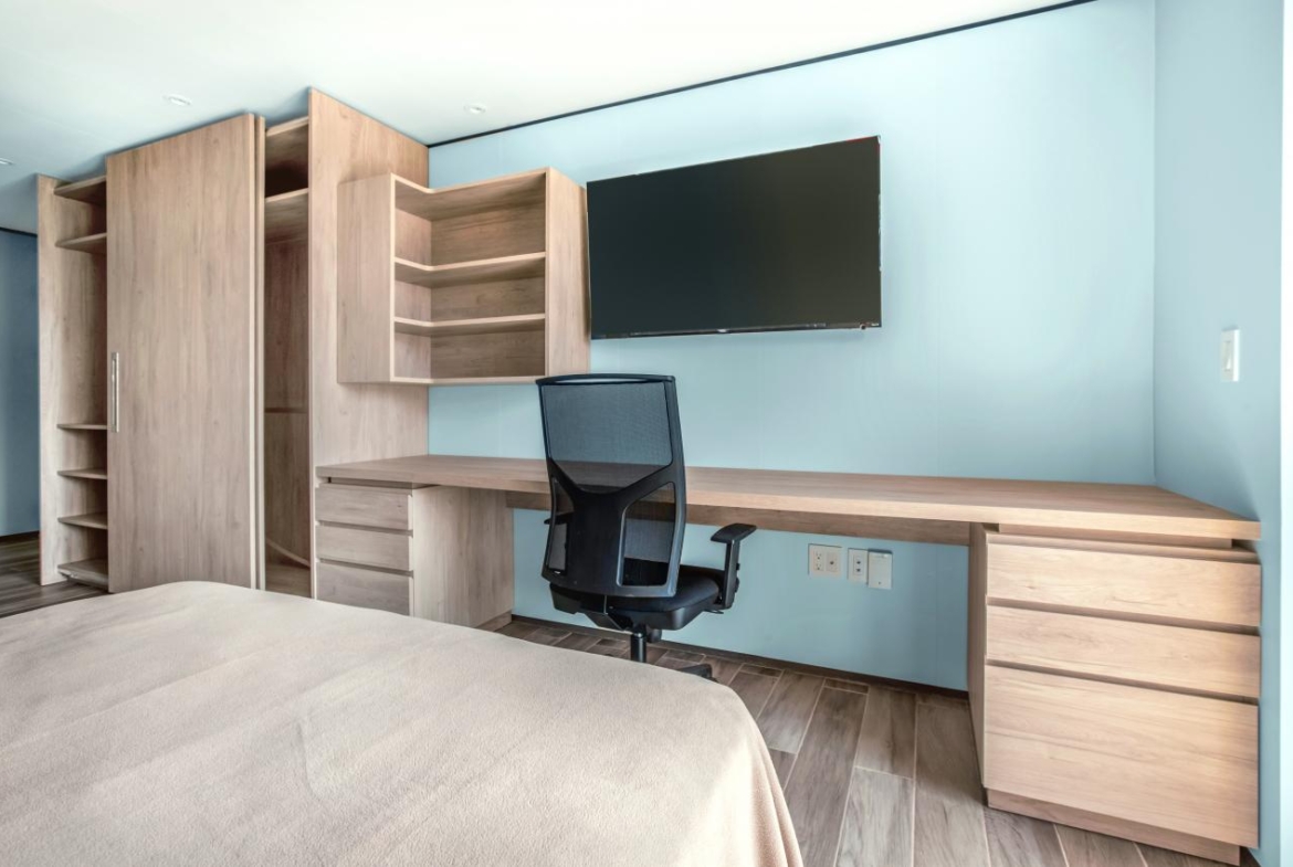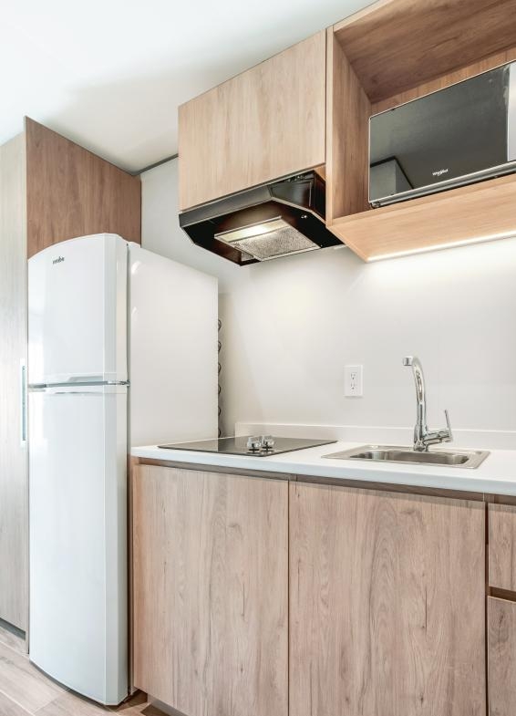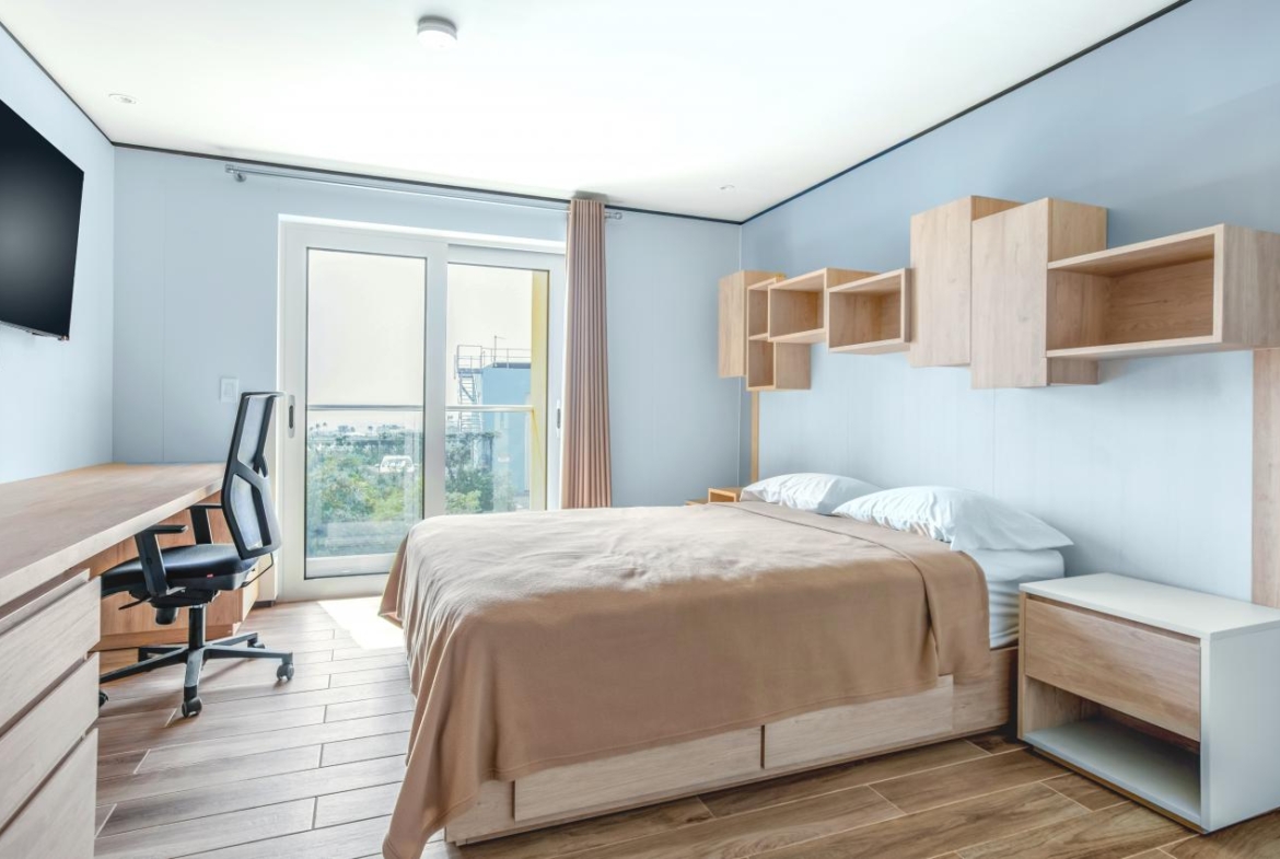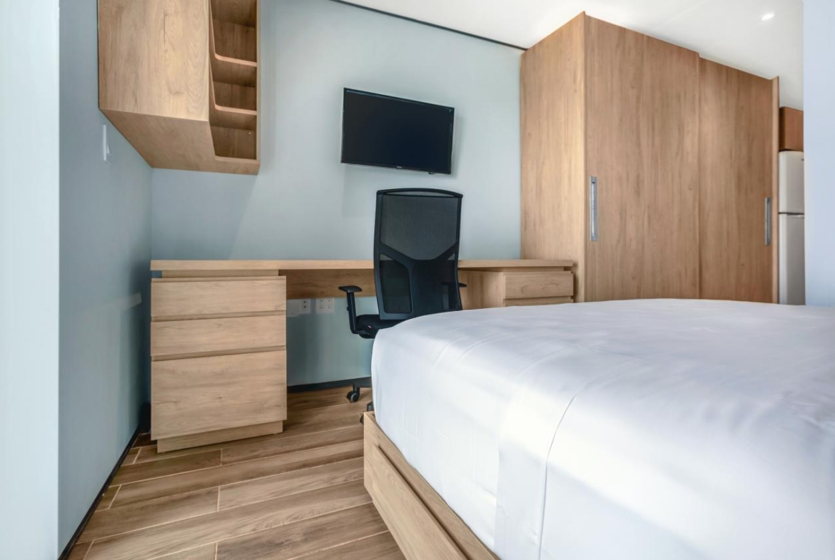 Modern residences with 24/7 security. Comprised of 144 apartments, from studios to 2 bedrooms. Turn-key units optimized for space and outfitted with modern furniture and appliances.